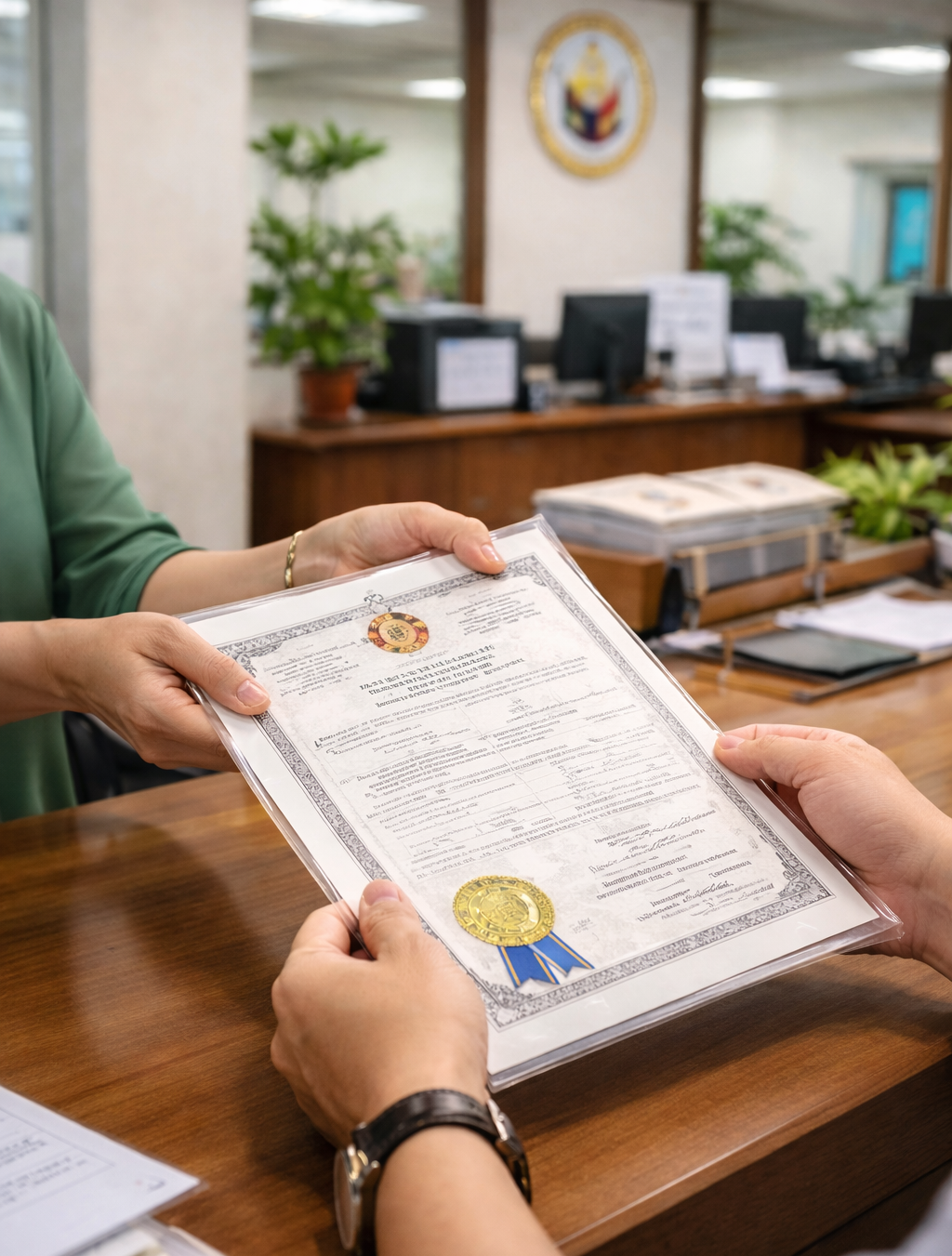 8. Certificate of Title – The Register of Deeds after receiving the original and duplicate copies of the original certificate of title or decree of registration will put OCT Number and will be kept at the vault of the registry. After payment of legal fees, the duplicate owner’s copy of OCT will be given to the registered owner.